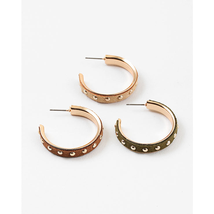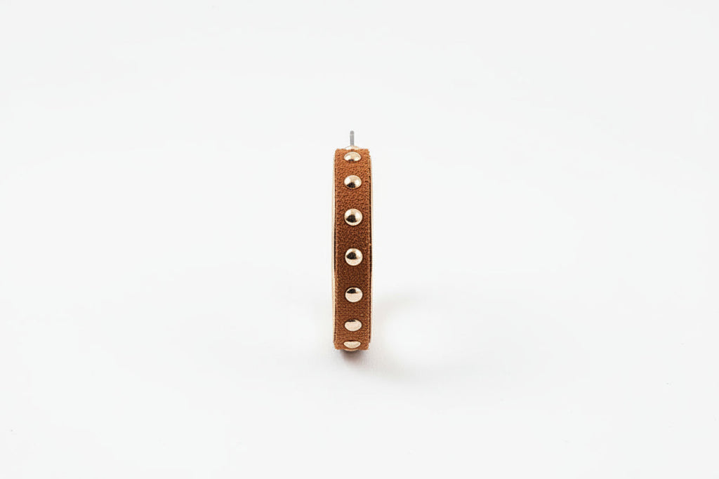 Gold hoop earrings with studs on suede
